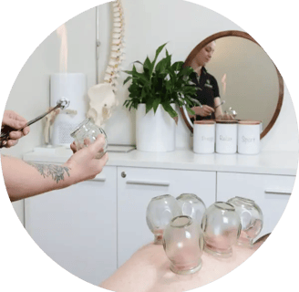 Release built-up tension in your back, neck, and shoulders with fire cupping. The gentle suction lifts and stretches the superficial layers, boosting circulation and creating space within the tissues for greater ease and freedom of movement.