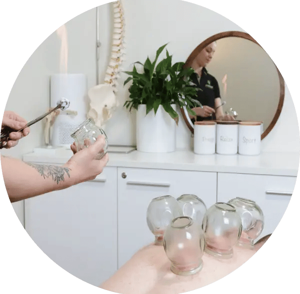 Release built-up tension in your back, neck, and shoulders with fire cupping. The gentle suction lifts and stretches the superficial layers, boosting circulation and creating space within the tissues for greater ease and freedom of movement.