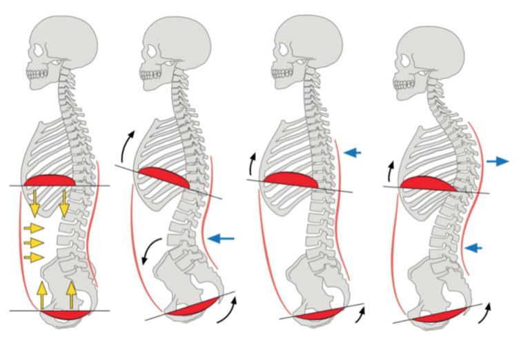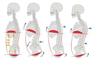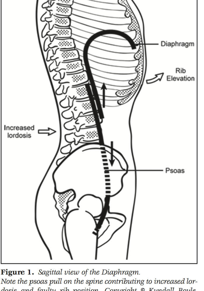 The psoas and the diaphragm — our main breathing muscle — are anatomically and functionally linked, by the crucial ligament. In fact, in dissection, they are often harder to separate from each other than the psoas and iliacus. When the psoas is tight, it can pull on the lumbar vertebrae and exaggerate the lower back’s natural arch (lumbar lordosis). This postural shift restricts the diaphragm’s ability to descend fully with each inhale.